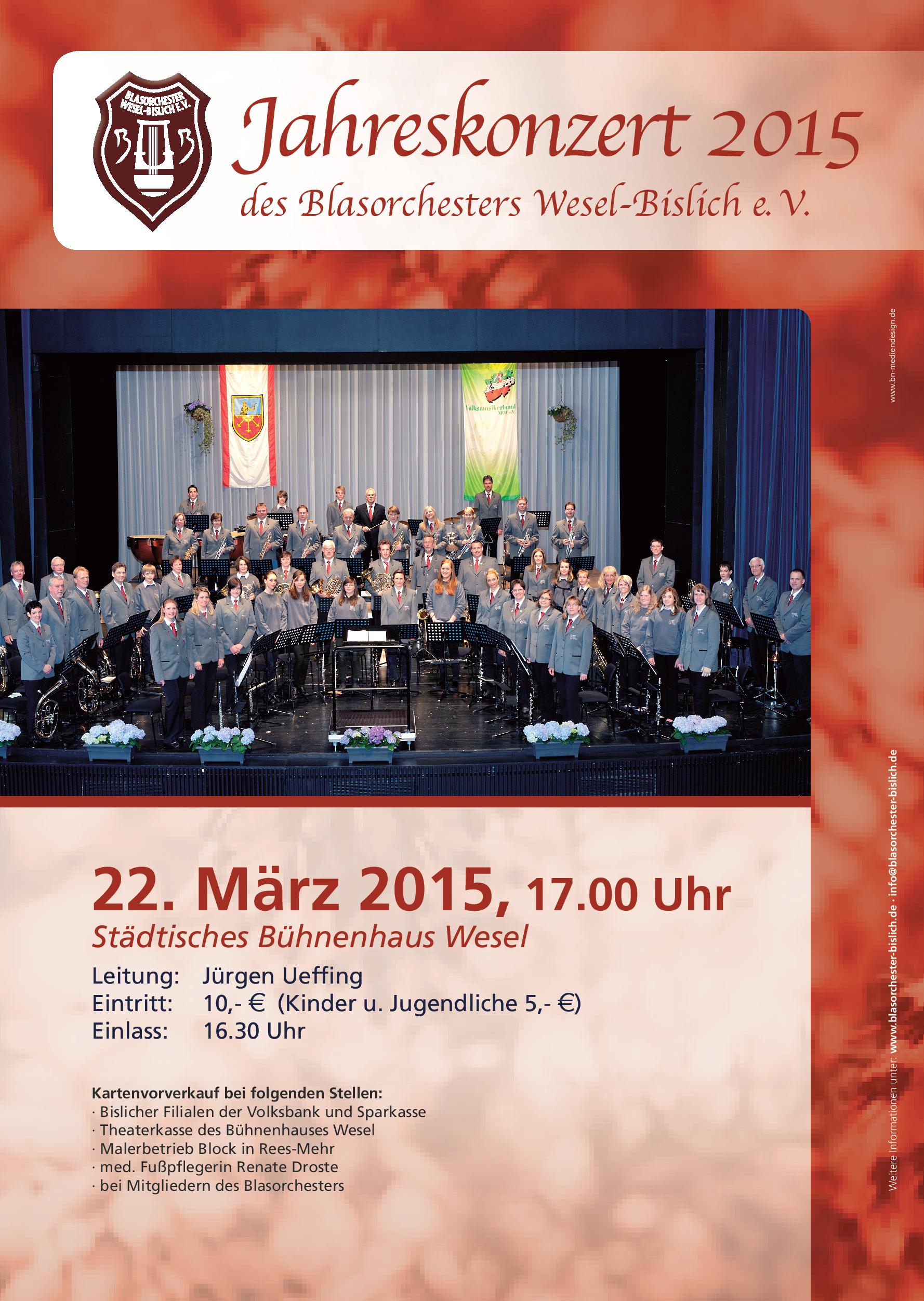 Am 22. März 2015 um 17 Uhr fand das Jahreskonzert des Blasorchesters Wesel-Bislich im Bühnenhaus der Stadt Wesel statt.